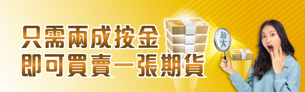 耀才隆重推出「期貨一開五」帳戶,客戶只需存入由港交所設定開倉按金的兩成(即20%開倉按金)便可買入/沽出一張期貨合約,每張開倉按金詳情如下:
